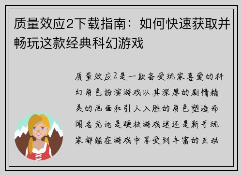 洛奇作为一款经典的多人在线角色扮演游戏(MMORPG),其独特的游戏机制和丰富的世界设定吸引了无数玩家。尤其是对于新手玩家来说,如何快速上手并充分体验游戏的乐趣,是一项非常重要的课题。本文将通过全面解析洛奇的新手卡,帮助玩家更好地了解游戏的各个方面,从而提升游戏体验。我们将从四个方面进行详细阐述:新...