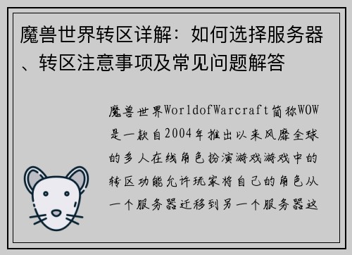 《熊猫人战袍购买途径大全教你如何获得心仪战袍》这篇文章将详细探讨如何获取熊猫人战袍,从多个不同角度为玩家提供丰富的攻略信息。熊猫人战袍作为《魔兽世界》中的独特战袍之一,深受玩家喜爱,既是玩家身份的象征,也是游戏中展现个性的方式。本文将从四个方面展开:1) 如何通过任务获得战袍;2) 如何通过商人购买...